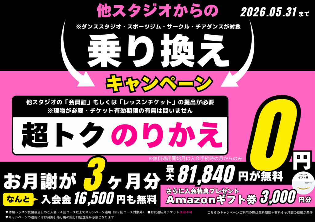 ・ダンススタジオ、スポーツジム、サークル、チアダンス などからの乗り換えOK!